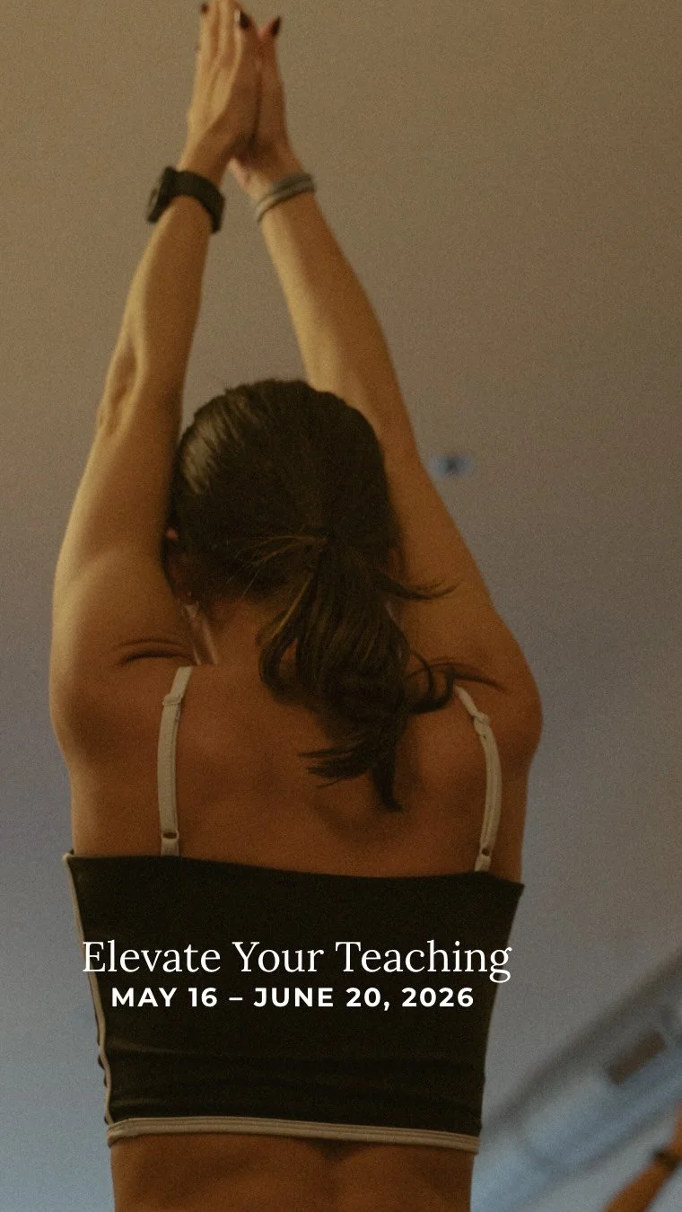 Elevate is a 50-hour practical bridge from a 200HR teacher training to wherever you plan to go next in your teaching. The Spring 2026 session of Elevate is focused on Designing a Class, and will offer in-depth teaching and practice in: